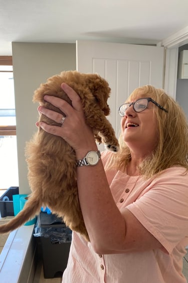 On the 30th May 2023 we collected our very special cavapoochon, Lola Grace. A video sent by the breader showed us that Lola had already shown a love towards people. Arriving home, Lola met the dogs that would be part of her life. Sid (her Yorkshire Terrier brother), Binx (her Cavapoochon sister from a different mister who lives next door), Mila (welsh springer), Willow (cavapoo) and Brock (old English bull dog)